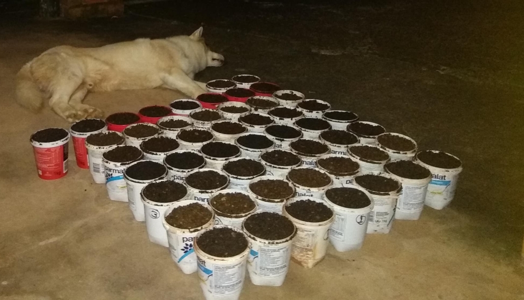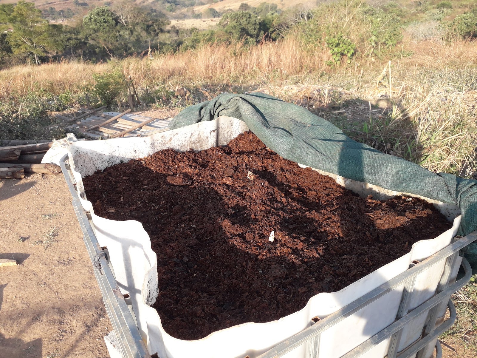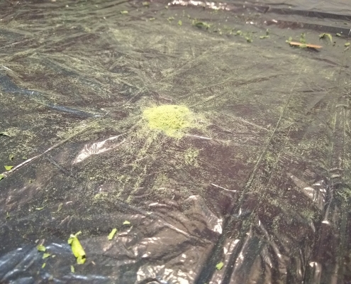The above image shows gathered material drying slowly on a rack for up to 7 days before sealing in a container.