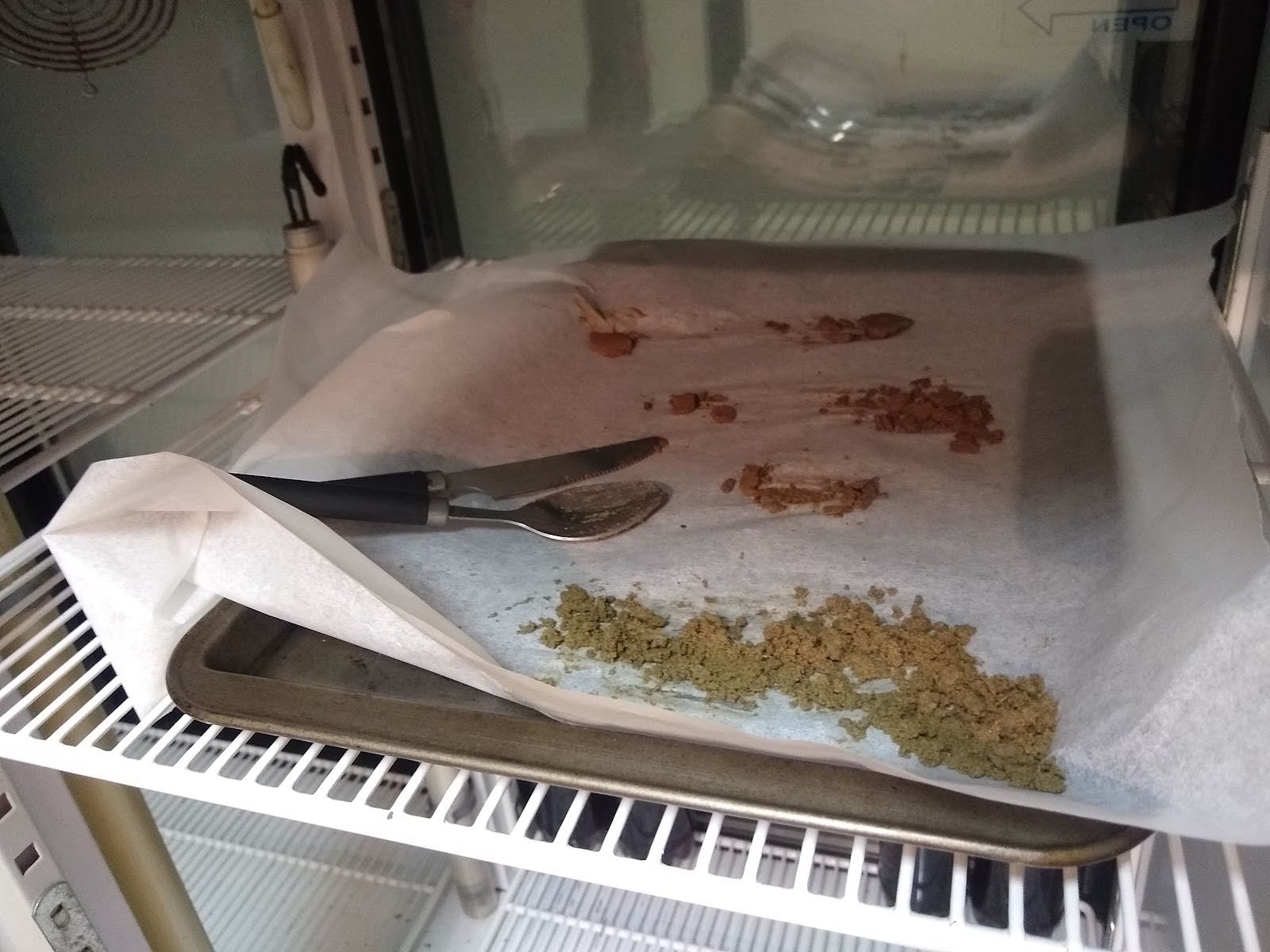The pic above shows the catch tank (right) and the bottom catch bowl (left) and the extracted material poured onto a tray to continue to evaporate the butane.