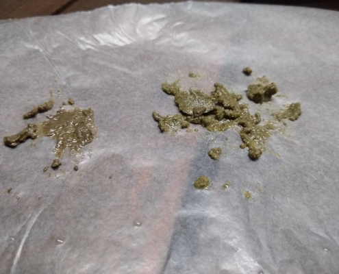 Images above show variation when pressing different flower samples with some producing far more rosin than others.