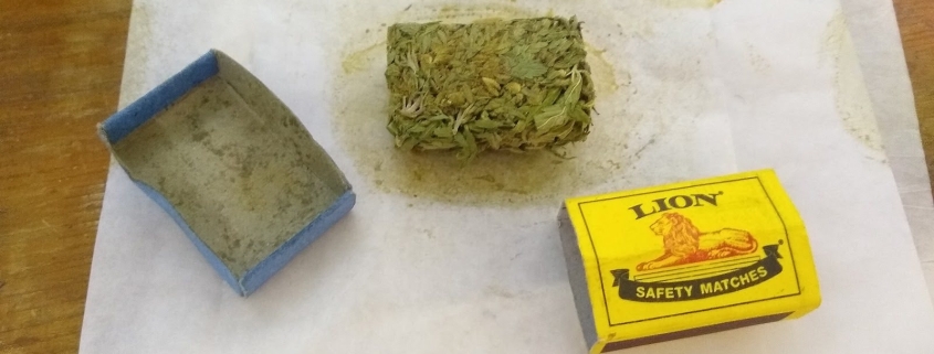 The above image shows gathered material drying slowly on a rack for up to 7 days before sealing in a container.